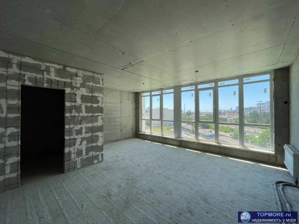 Квартира расположена на 6 этаже. Шикарные видовые характеристики на город, море и речку Сочи, которая протекает рядом с домом.